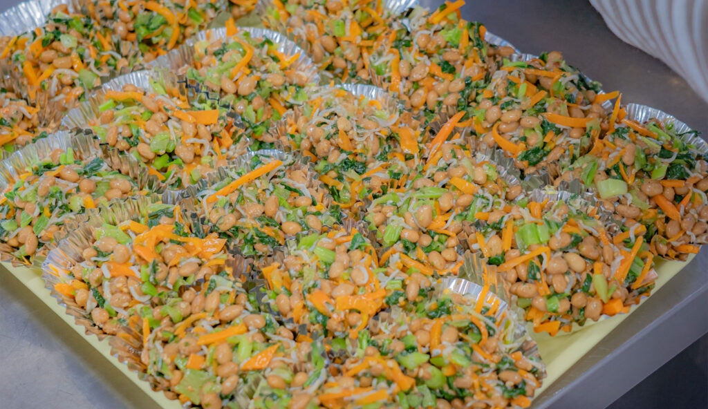 社会福祉法人 あかね福祉会の給食は、玄米と発酵食品をベースにした健康給食に大きなこだわりを持っています。「現代人に不足するミネラルを保育園の給食を通して届けたい」という法人創設者の篠原郁子氏の想いを表現しています。また、アレルギーがある子にも同じ高品質の給食を食べられるよう『8大アレルゲン除去』の給食をスタンダードにした、千葉市で唯一のオリジナル健康給食を、よつばキッチンから毎日提供しています。